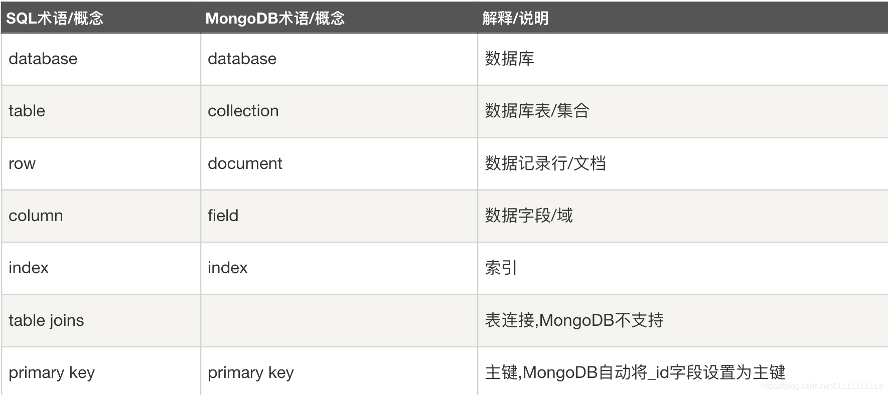 mongodb中基本的概念是文档、集合、数据库,下面我们进行简单介绍:
