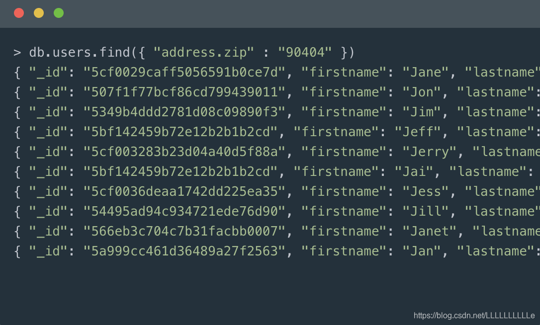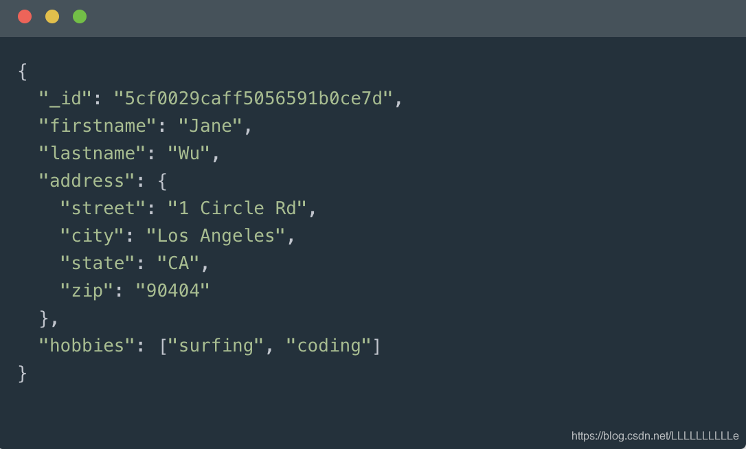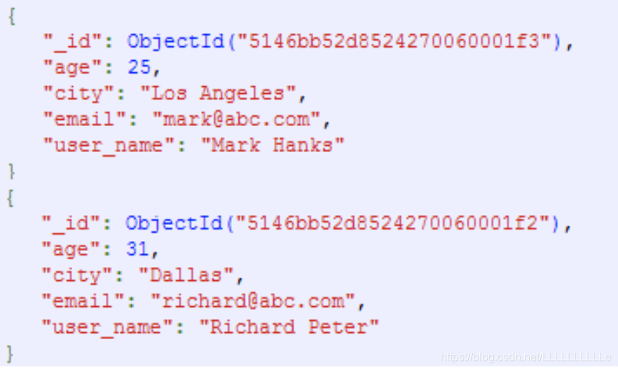 通过下图实例,我们也可以更直观的了解Mongo中的一些概念: