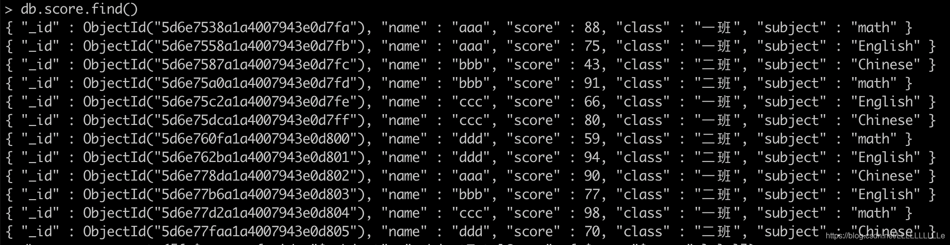 - 当在$project中使用时,累加器则是针对每个字面量起作用