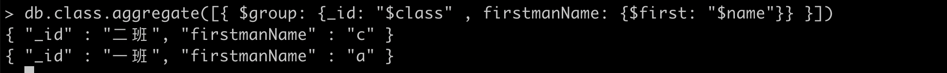 | $first | 用于返回分组的第一个值,只能用于$group |