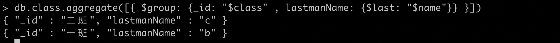 | $last | 用于返回分组的最后一个值,只能用于$group |