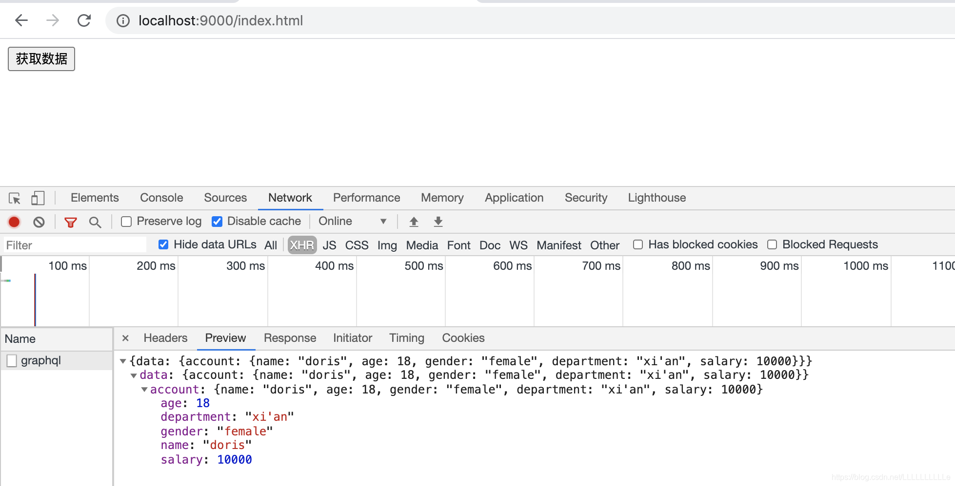 然后运行 js 文件,运行完毕之后在localhost:9000/index.html进行对应的操作