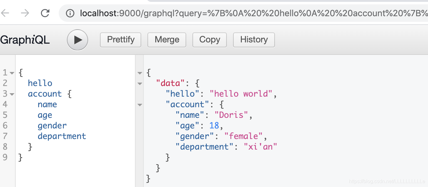 ⚠️ getName(Id: ID!, Age: Int): [Int] 这句最后的[Int]的意思是getName这个查询的返回值是 Int 类型的数组