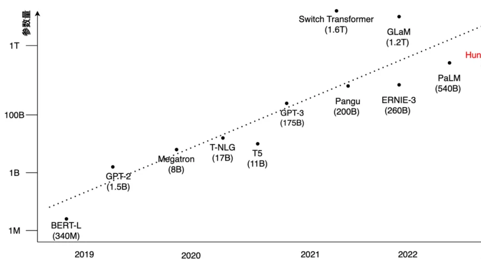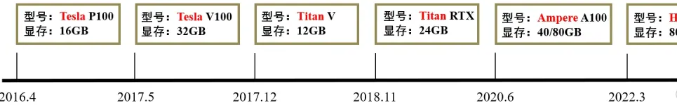 graph LR A[2018 BERT 340M] --> B[2019 GPT-2 1.5B] B --> C[2020 GPT-3 175B] C --> D[2021 Switch Transformer 1T] E[GPU显存增长] --> F[4年仅增长4倍]