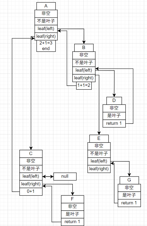 叶子节点个数 = 左子树的叶子节点个数 + 右子树的叶子节点个数