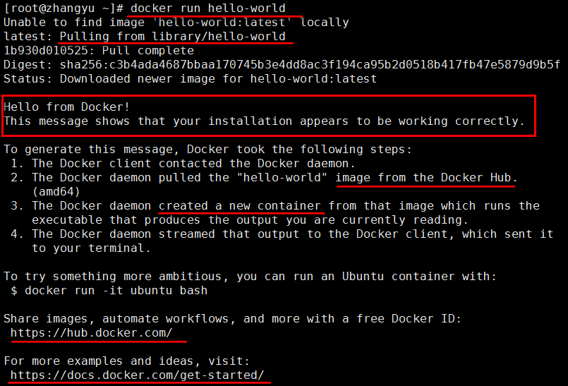 - 输出这段提示以后,hello world就会停止运行,容器自动终止。