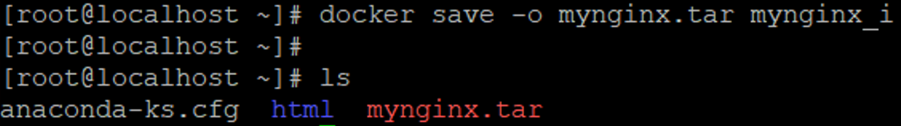 通过 save 保存成文件之后,在通过 ls 命令进行查看当前目录是否有 tar文件