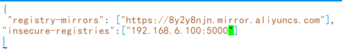 | “insecure-registries”:[“192.168.6.100:5000”] |