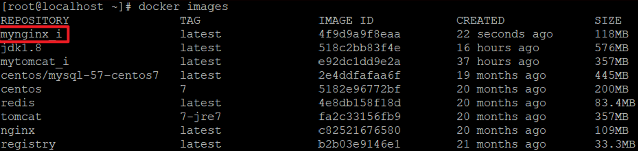 删除完成之后 , 在查看镜像是否还存在 ,发现mynginx_i 镜像已经被删除