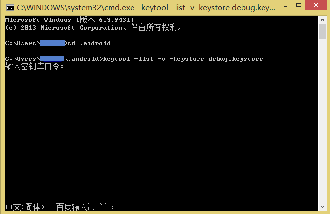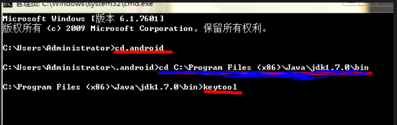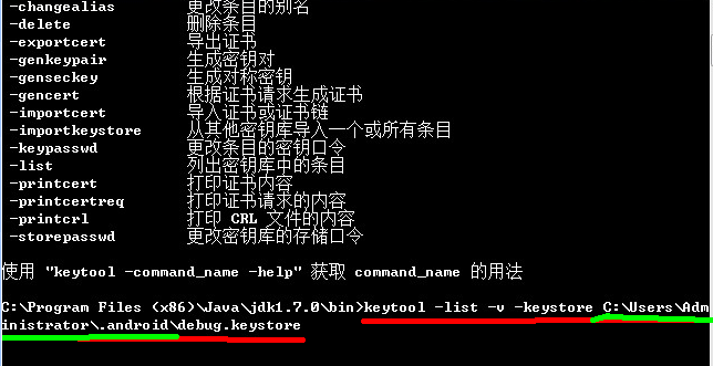 其中keytool为jdk自带工具;keystorefile为Android 签名证书文件