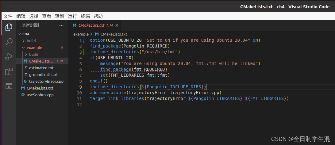 查看CMakeLists.txt,发现Ubuntu20.04需要额外安装fmt库才可以编译通过