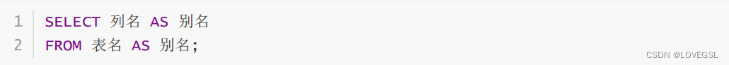 2、列名的别名语法: