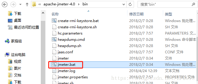 双击Jmeter解压路径的bin下面的jmeter.bat,如下图:
