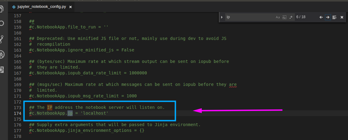 code ~/.jupyter/jupyter_notebook_config.py 【没装VSCode的可以用gedit ~/.jupyter/jupyter_notebook_config.py 】