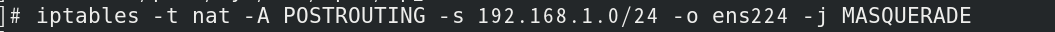 [root@localhost ~]# iptables -t nat -A POSTROUTING -s 192.168.1.0/24 -j MASQUERADE