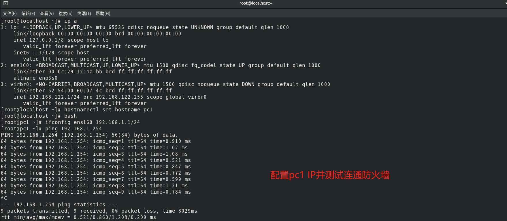 准备私网客户端:设置网卡网段为192.168.1.0/24;ip设为192.168.1.1;网关设为192.168.1.254。
