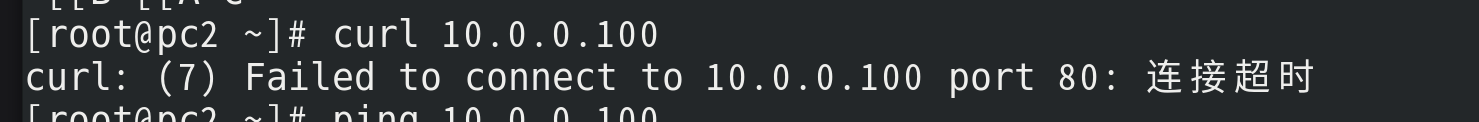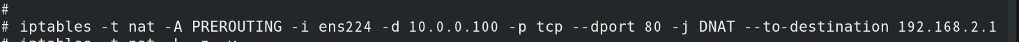 [root@localhost ~]# iptables -t nat -A PREROUTING -i ens33 -d 10.0.0.100 -p tcp --dport 80 -j DNAT --to-destination 192.168.1.2