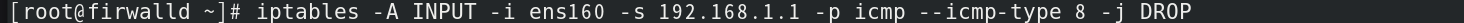 [root@localhost ~]# iptables -t filter -A INPUT -p icmp -j REJECT