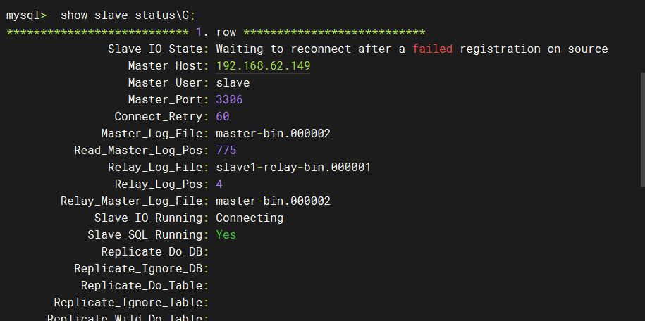 | master | 192.168.62.149 | rocky linux9.4 mysql-8.0.36 |
