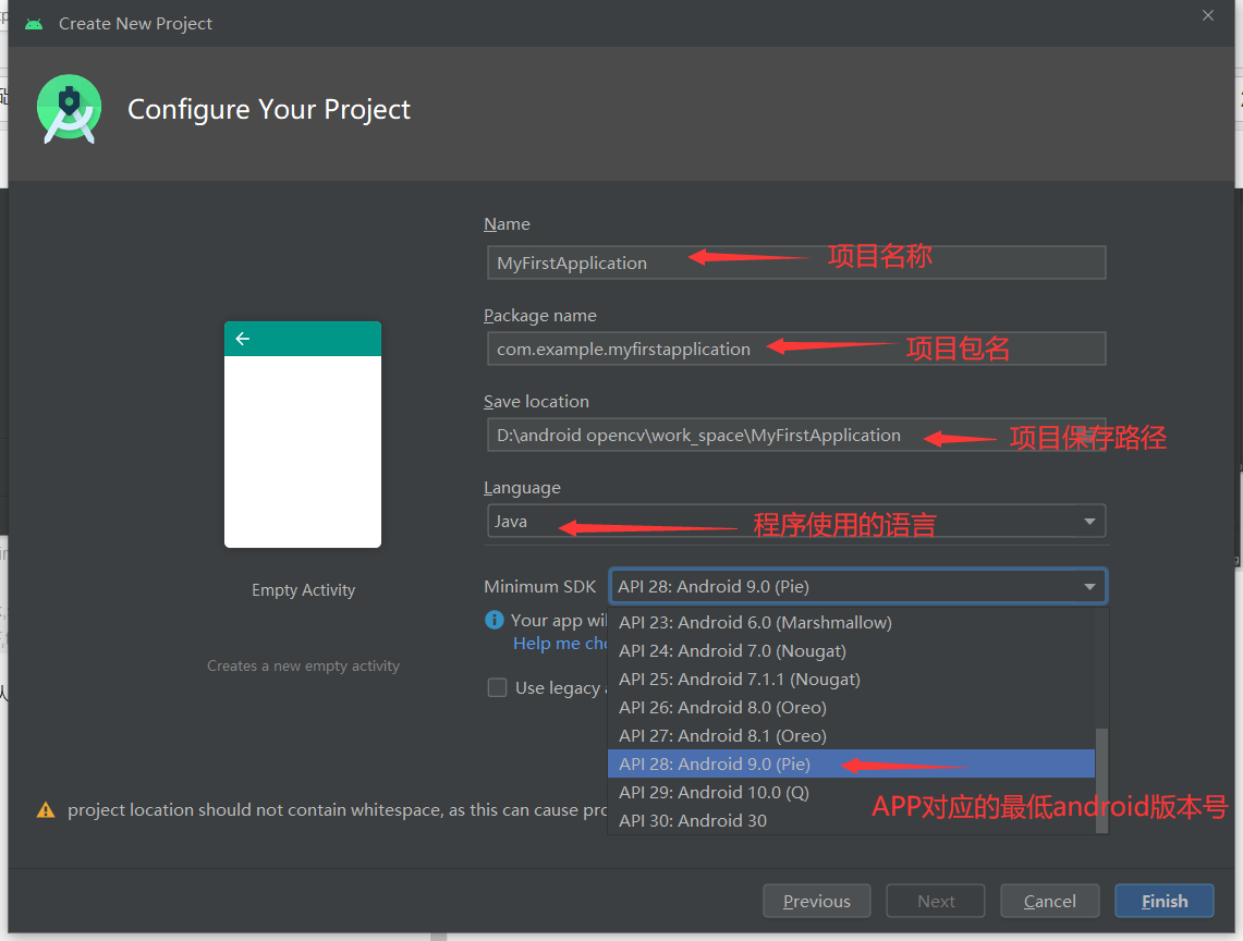 1)运行android studio工具; 2)打开一个创建项目页面;