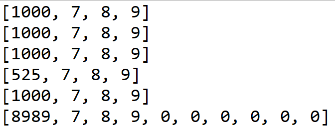 arr4[0] = 1000;//因为指向相同,都指向同一个数组,所以修改0位置的数,打印出来显示两数组里0位置的数都改了