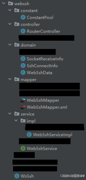 该代码示例展示了如何通过WebSocket与服务器建立连接会话,并建立SSH连接,实现网页上的XShell功能。它利用@OnOpen、@OnMessage等注解处理连接打开、消息接收等事件,并通过JsonDecoder进行JSON解码。同时,服务端的initConnection方法初始化SSH连接,receiveHandle方法处理客户端发送的数据,进行命令执行等操作。
