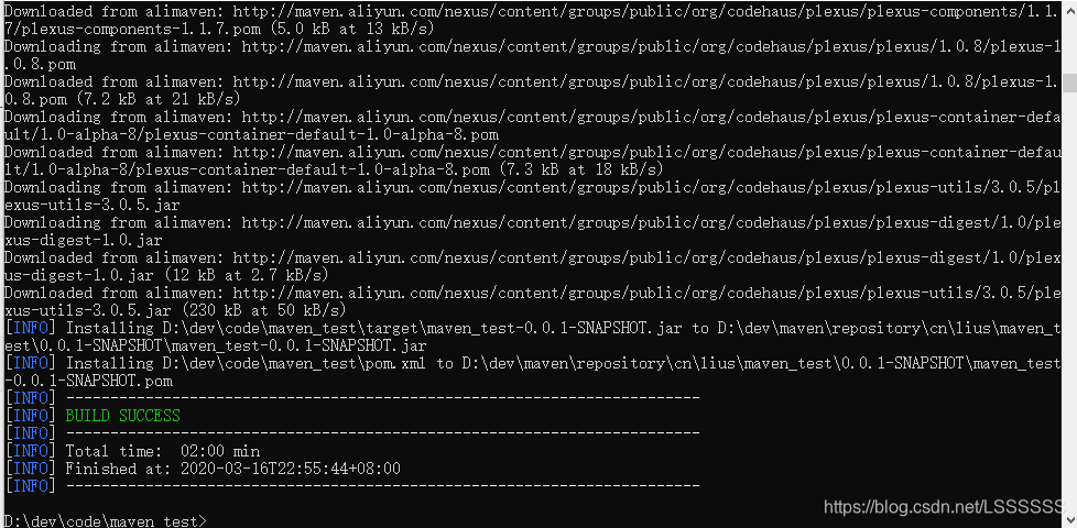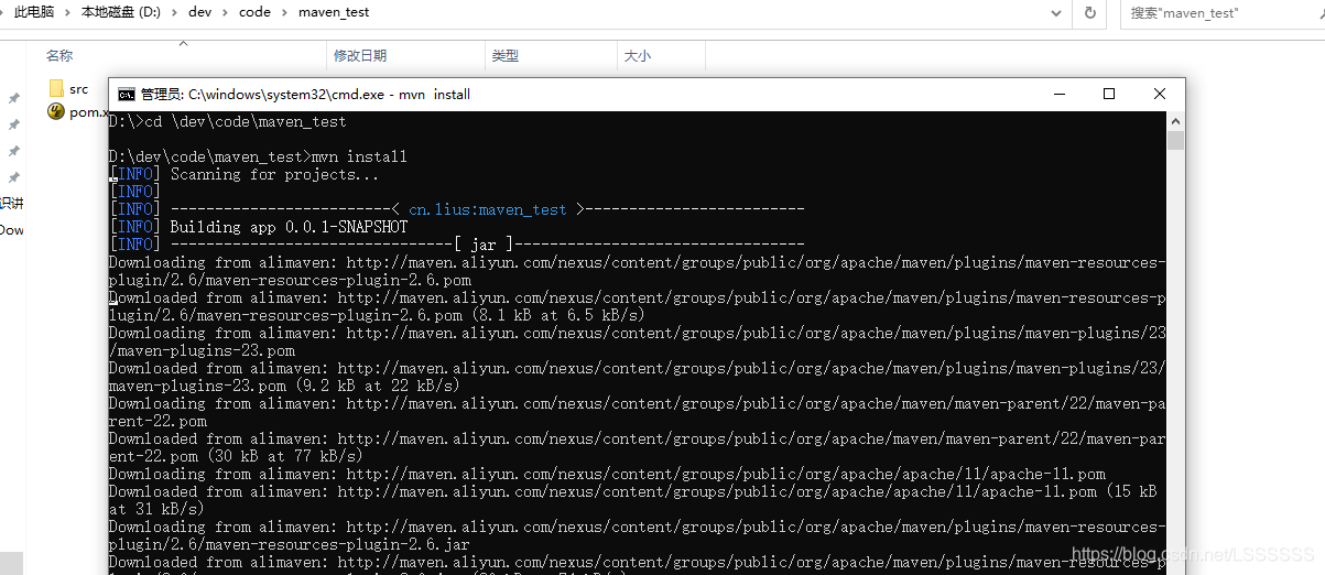 9.打开cmd 命令行,进入D:\dev\code\maven_test 目录,输入mvn install