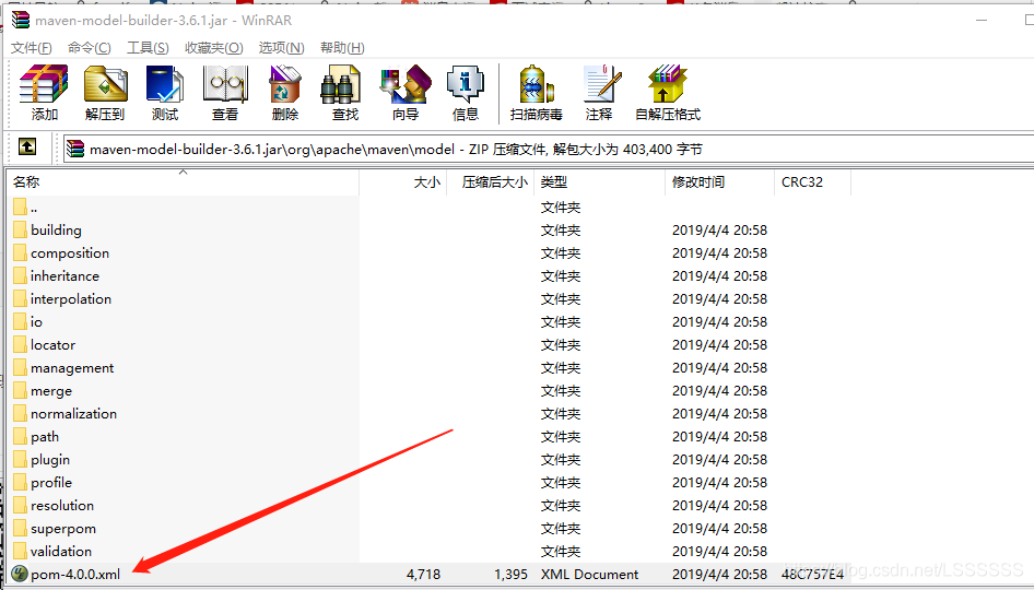然后查看压缩包maven-model-builder-3.6.1.jar\org\apache\maven\model下的pom.xml文件