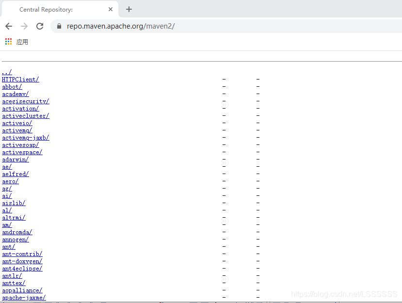 7.把全球中央仓库地址放入浏览器,可以看到很多资源,maven 默认从这个仓库下载依赖jar包