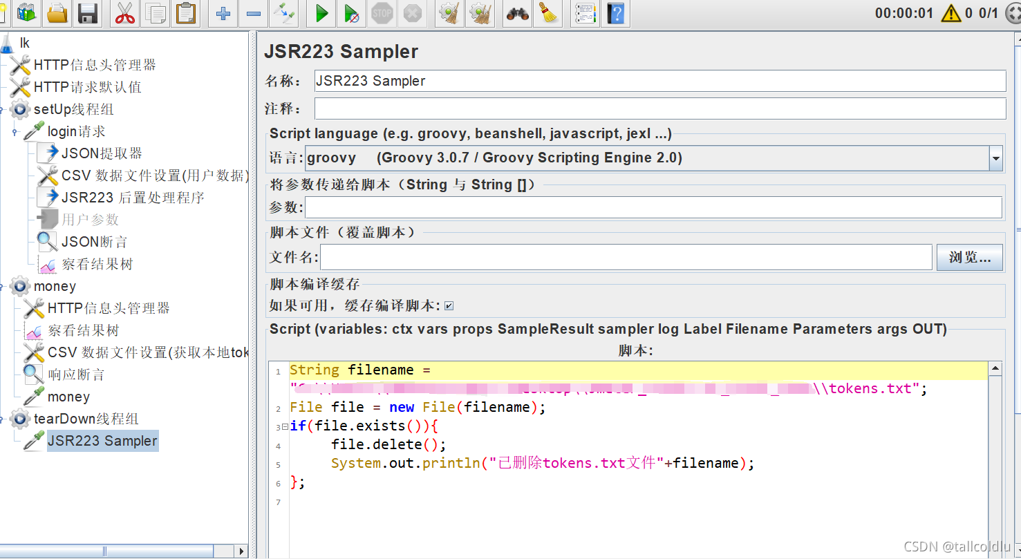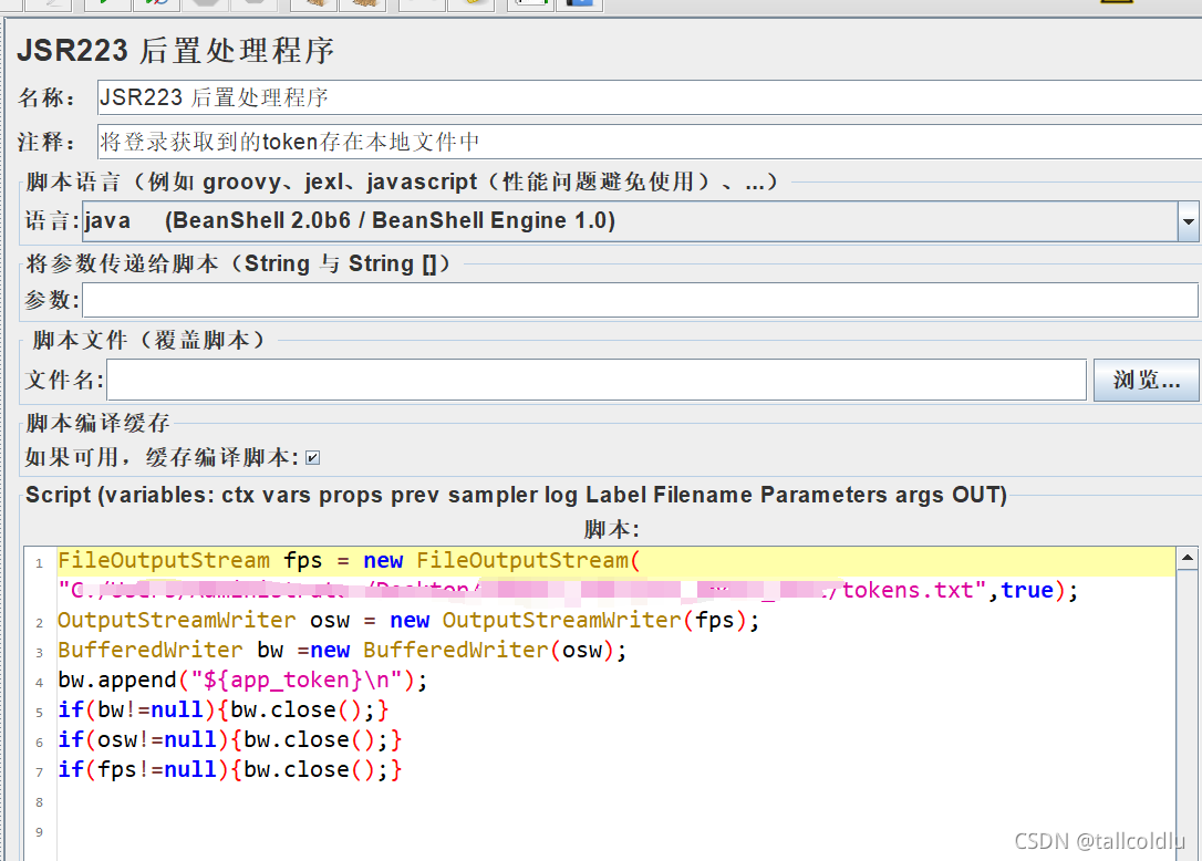 4、JSR223后置处理程序,利用Java代码,把token保存在本地文件