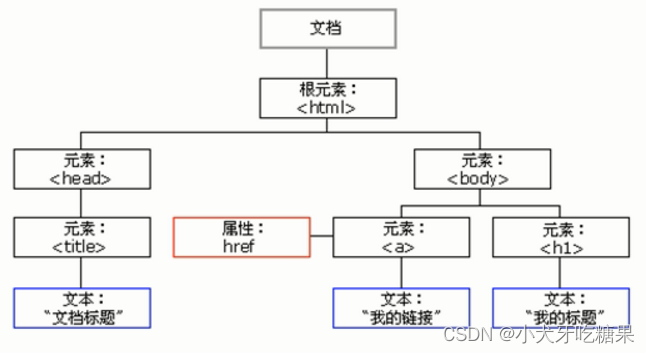 标签节点:网页中的所有标签,通常称为元素节点,又简称为“元素”,使用element表示