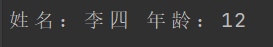 Console.WriteLine($"姓名:{Name} 年龄:{Age}");