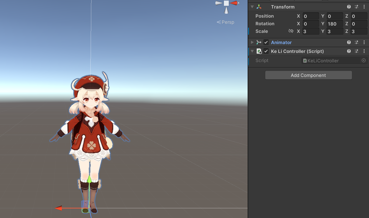 然后在场景中随便创建一个敌人(需要有「MeshRenderer」),然后挂载一个控制脚本。我这里的脚本命名为「KeLiController」