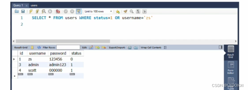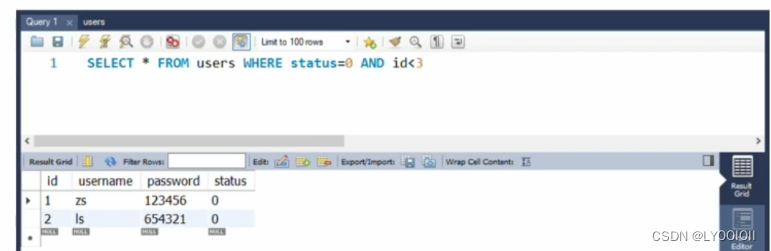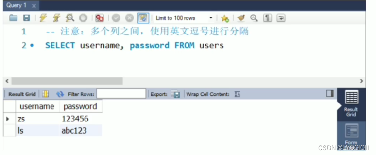 如需获取名为"username”和"password"的列的内容(从名为"users"的数据库表),请使用下面的SELECT语句: