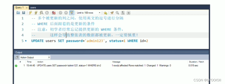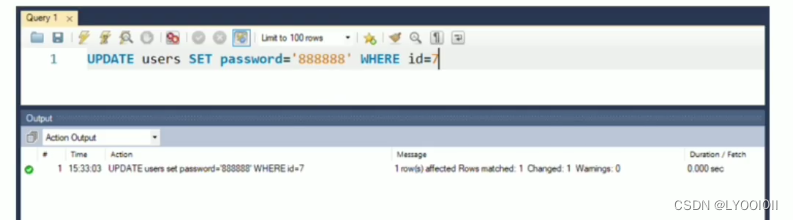 //注意:执行了 update 语句之后,执行的结果,也是一个对象,可以通过 affecEledRows 判断是否更新成功