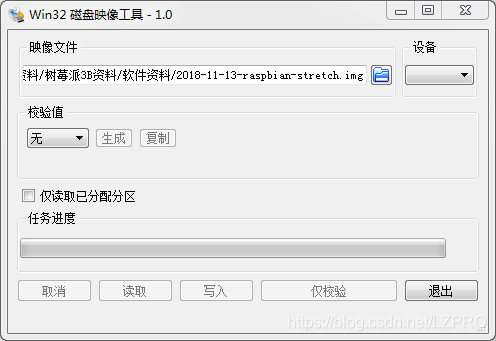4.打开win32diskimager,选择需要的镜像文件,点击写入