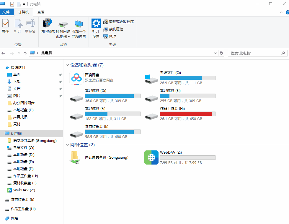 至此,我们的全部流程就已经完成了。打开自己的计算机,你会发现自己网盘上的文件都在一个网络位置中。