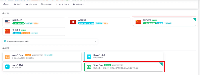 点击购买云服务器,区域选择江苏宿迁,配置选择Tesla P40。