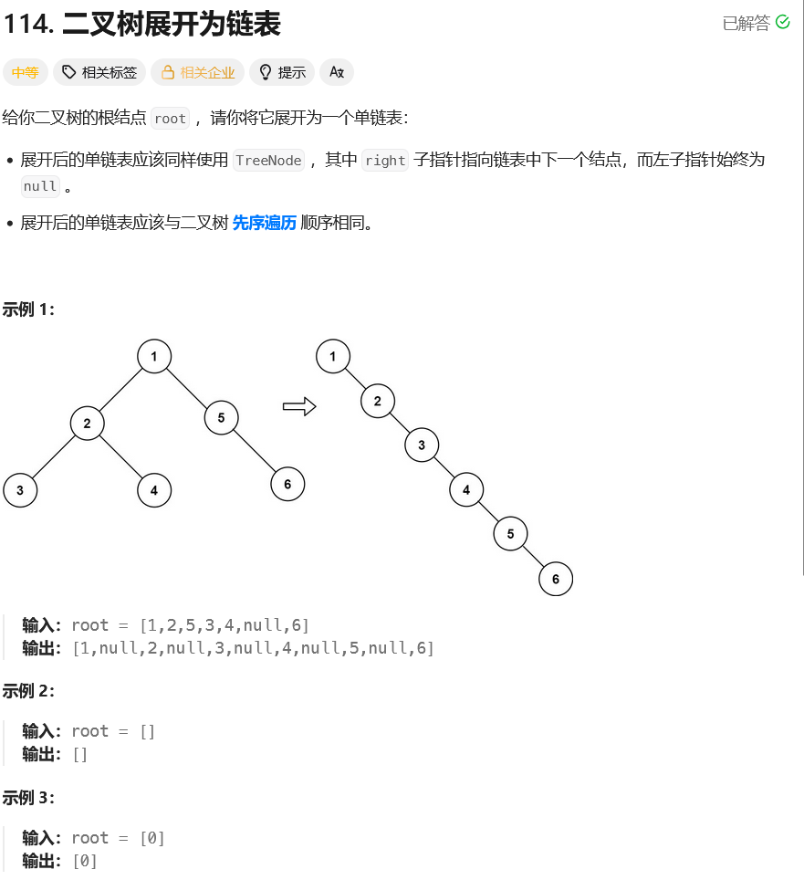即 链表顺序为 根节点-> 左子树所有节点(同样根左右)-> 右子树所有节点(同样根节点)