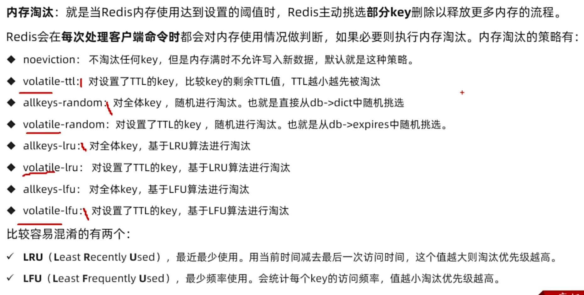 *淘汰策略: random(随机淘汰) LRU(最后一次访问时间) LFU(访问频率)
