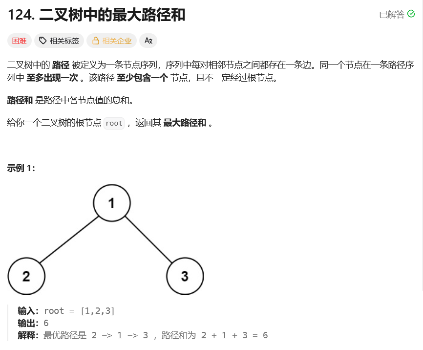 若当前节点,接收到的返回值其中一个<=0,说明其只有一个子树,或另一个子树值之和<0废弃,当前节点与>0的返回值叠加,更新最大和向上返回即可。