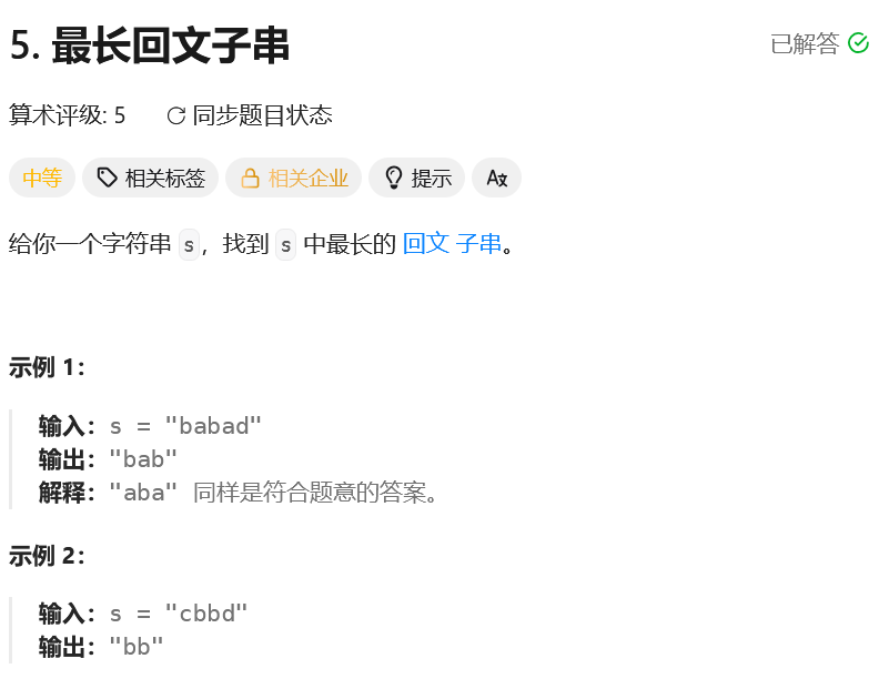 注,回文子串长度可能是奇数也可能是偶数,枚举时奇数情况(从同一个点开始扩散) 与 偶数情况(从两个相邻的点开始扩散)需要同时扩散