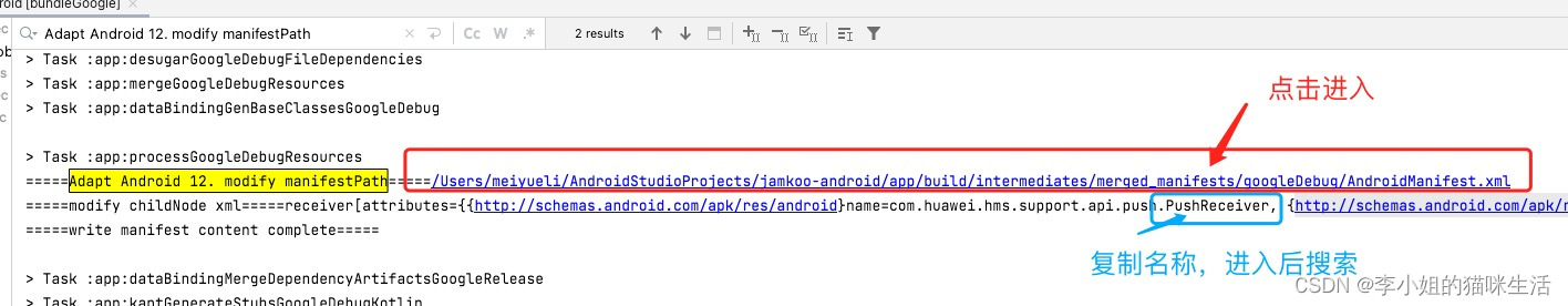 然后你复制组件信息到你引入库的注册文件下粘贴,把android:exported="true"加上或更改再运行即可。