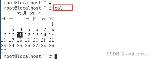 cal(带上年份参数):如 cal 2024,则会显示整个2024年的日历。
