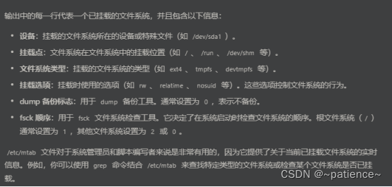 /etc/mtab 文件由内核在挂载文件系统时更新,并且包含了关于已挂载文件系统的详细信息。