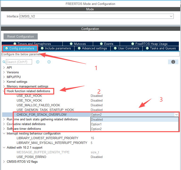 将 configCHECK_FOR_STACK_OVERFLOW 设置为 3 即可使用此方法。