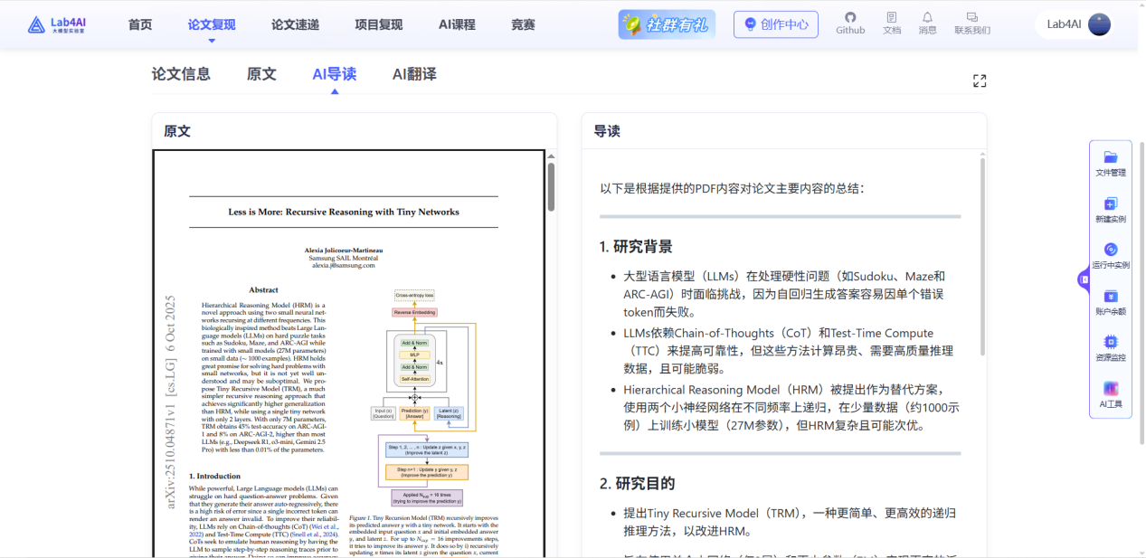 - Lab4AI.cn提供免费的AI翻译和AI导读工具辅助论文阅读;
