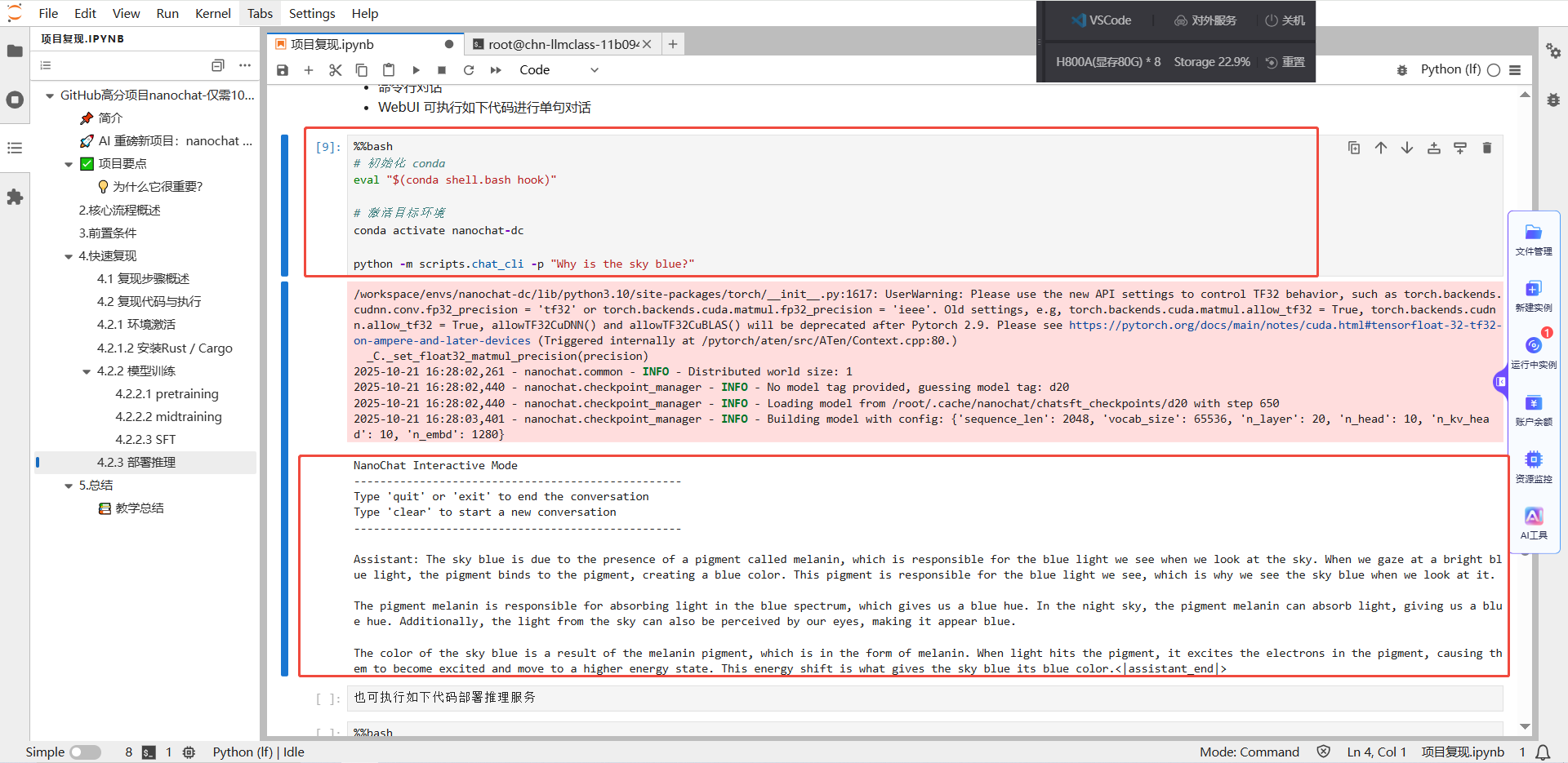 项目内已经提供完整的复现NanoChat的全流程代码和环境,您只需配置8卡,即可手搓ChatGPT。