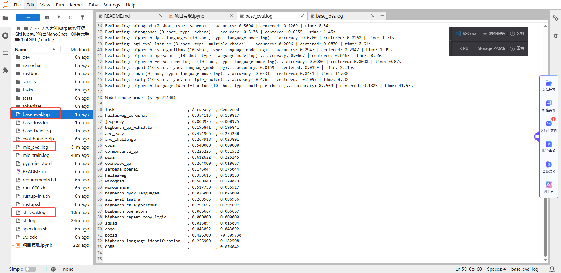本次复现中,我们将训练分为pretrain、midtrain和SFT三个阶段。pretrain阶段约需要2.5-3小时,midtrain阶段约耗时30分钟内。