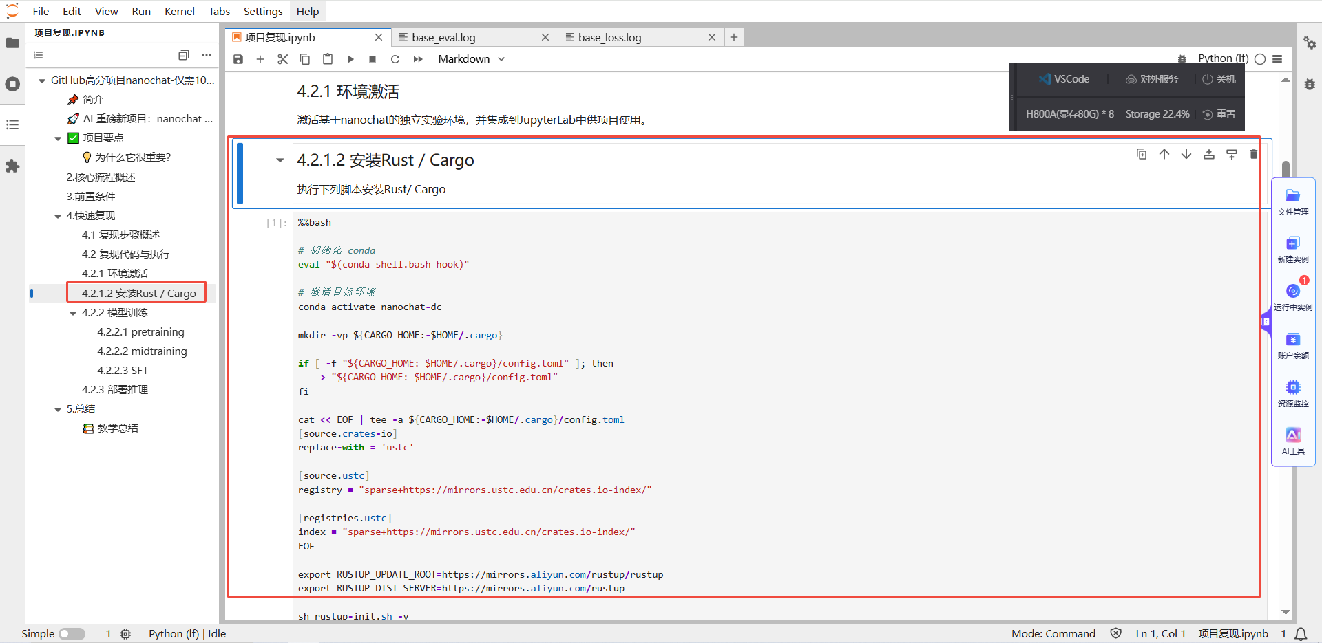 系统内已经预置可用的conda虚拟环境,此环境可满足后续步骤的需要。您只需执行下列脚本安装Rust/Cargo。